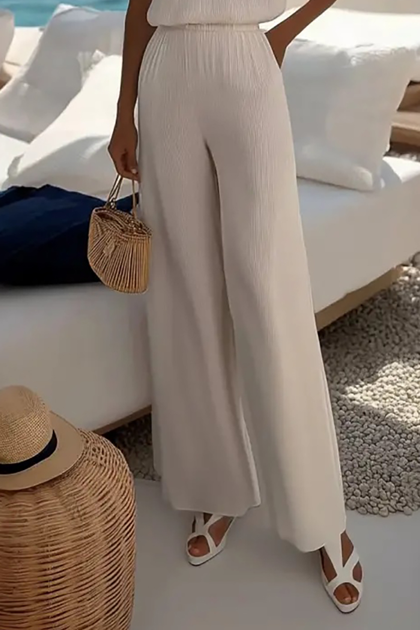 Stay effortlessly chic in this beige sleeveless jumpsuit. Designed with a flattering V-neck and straight-leg cut, it features functional pockets and a clean silhouette—perfect for everything from beach days to brunch.