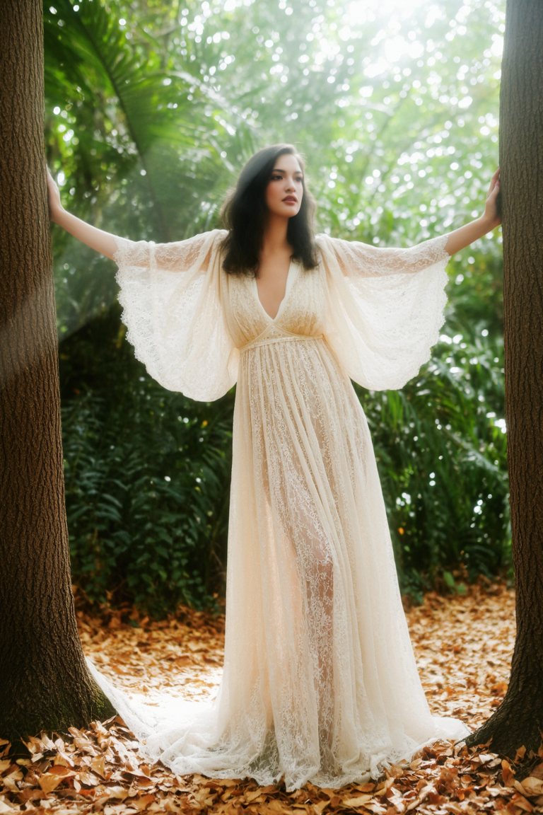Embrace effortless romance in this ethereal white bohemian lace dress, featuring a deep V-neckline and flowing floor-length silhouette. Delicate lace detailing adds vintage charm, while the airy design creates a dreamy, free-spirited vibe. Perfect for garden weddings or summer soirées, this dress exudes boho-chic elegance with a touch of allure