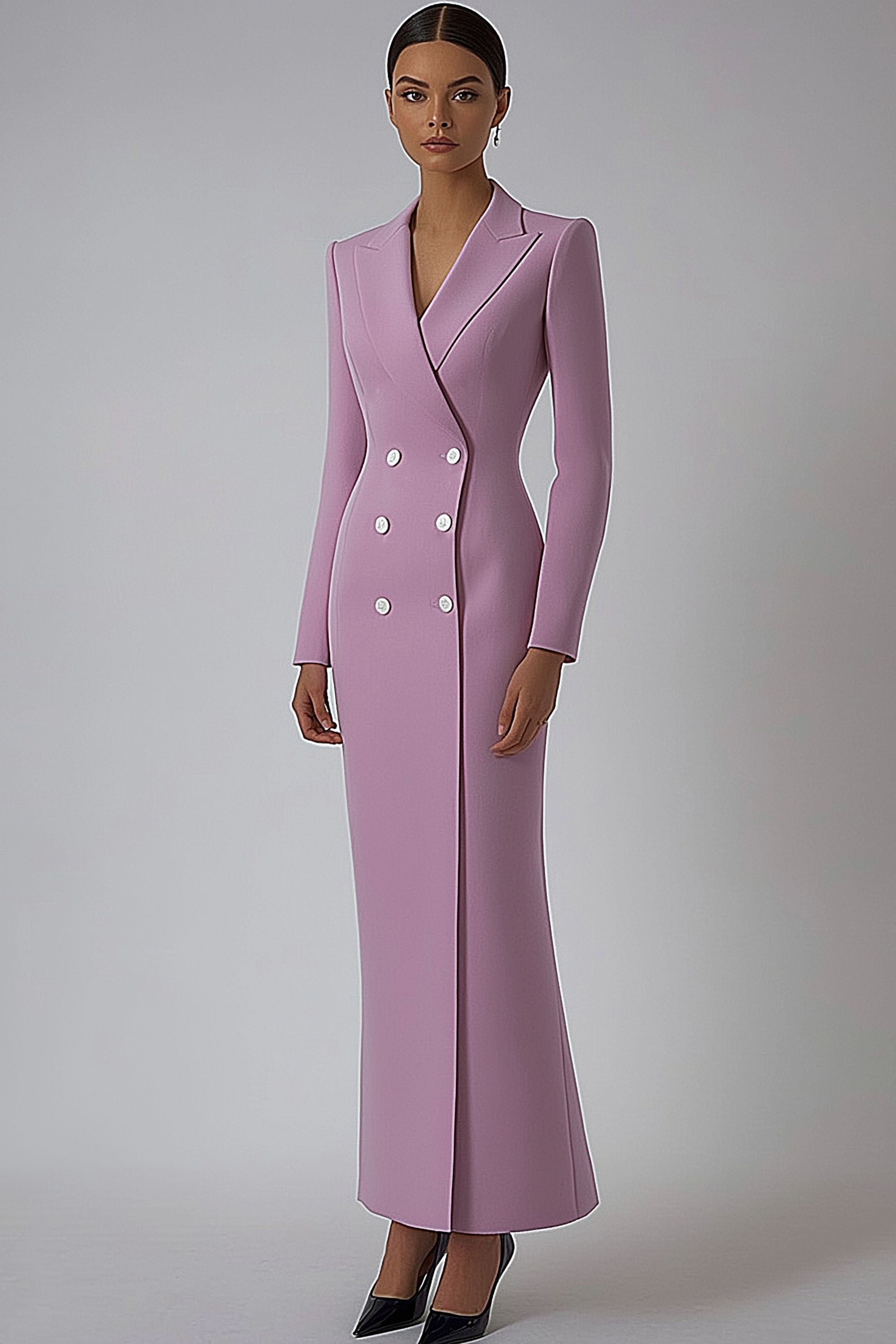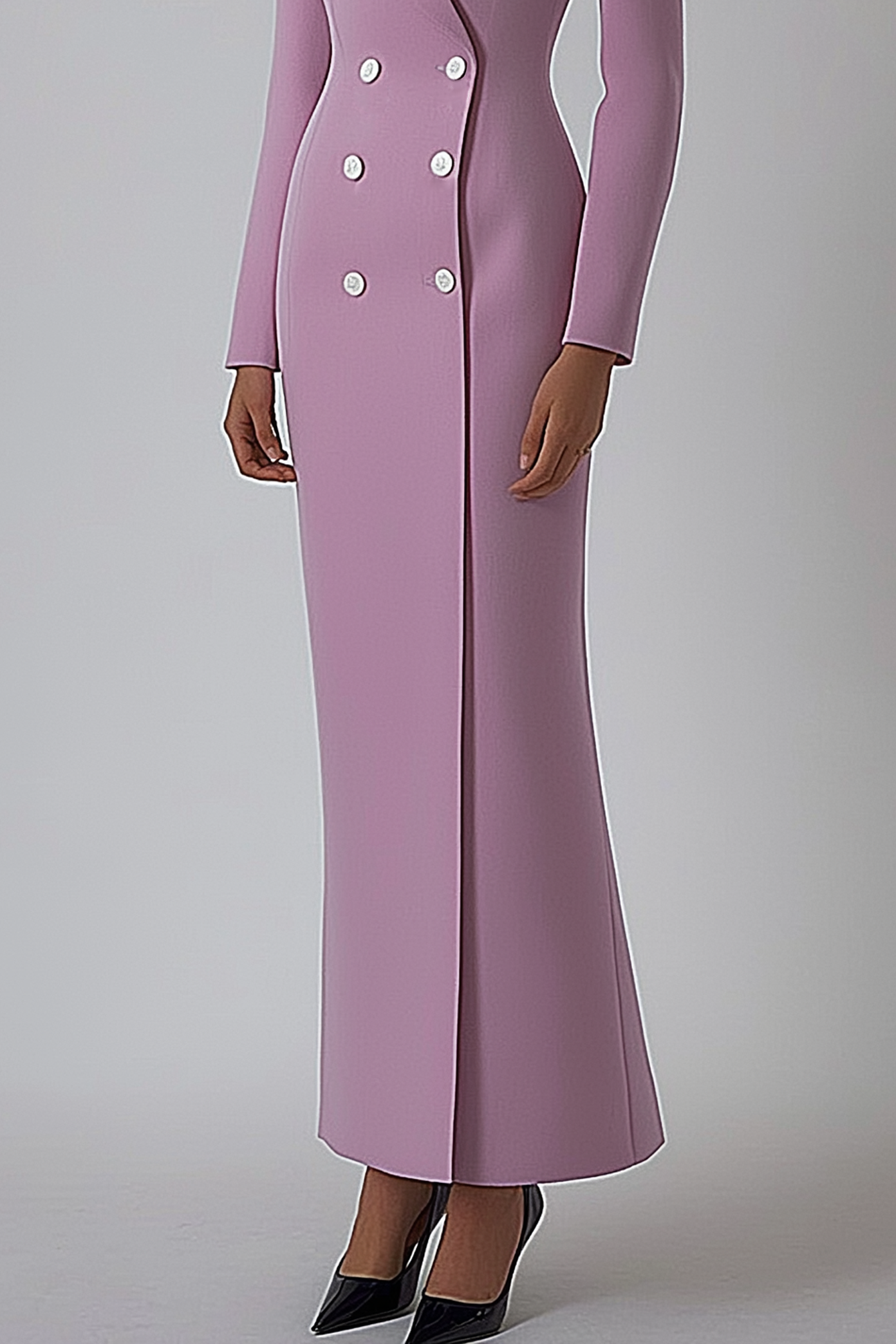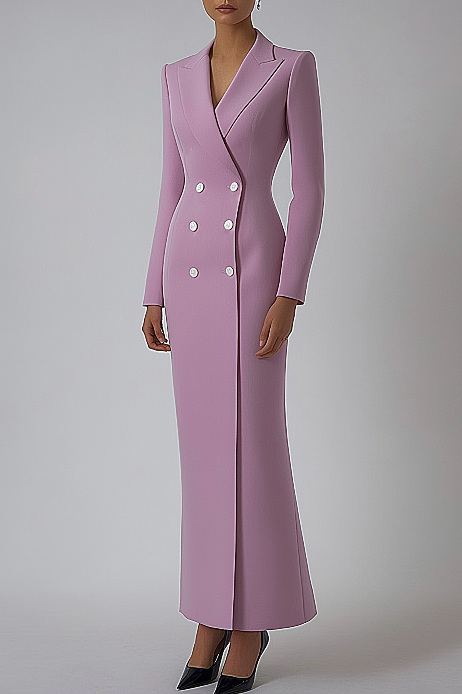 Work Blazer Dress Purple Lapel Long Sleeve Double Breasted Maxi Dress