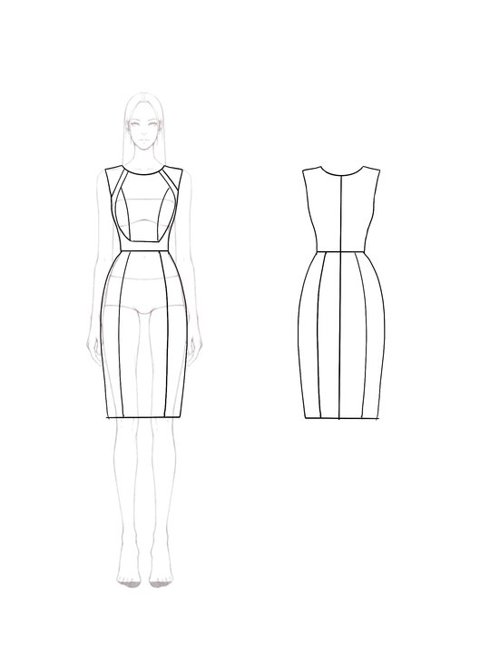 This refined white dress blends a structured design with a touch of modern elegance. Featuring a classic crew neckline and sleeveless cut, the patchwork detailing adds a subtle yet stylish element, making it a go-to choice for professional wear.